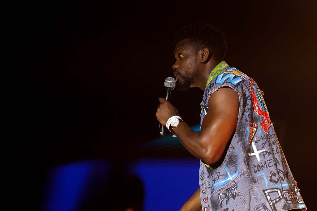 O primeiro grande nome para este palco no alinhamento do NOS Alive chegou no entanto pouco depois. De pés descalços e um casaco sobre o tronco nu, aquilo que é a sua imagem de marca, falamos de Benjamin Clementine, ele que encantou o público ao começar pequeno para rapidamente crescer na música e na emoção. Com uma voz intensa e madura – Clementine nem parece ter apenas 35 anos –, o inglês, que para além de cantor é também autor, poeta e ator, cantou temas como “Nemesis”, “Jupiter”, “Residue” e “Condolence”. Por esta altura, tentou ainda perceber como dizer “condolences” [condolências] em português, mas sem sucesso, proporcionando ainda assim um momento divertido.