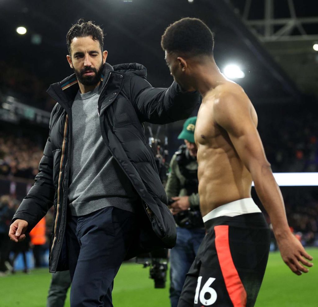 A equipa de Ruben Amorim entrou em campo com uma formação mais ofensiva, buscando desde cedo o golo, e de tal forma o procurou que o conseguiu ainda antes de concluído o segundo minuto da partida, aos 81 segundos, com Rashford a aproveitar um cruzamento preciso de Amad para inaugurar o marcador.