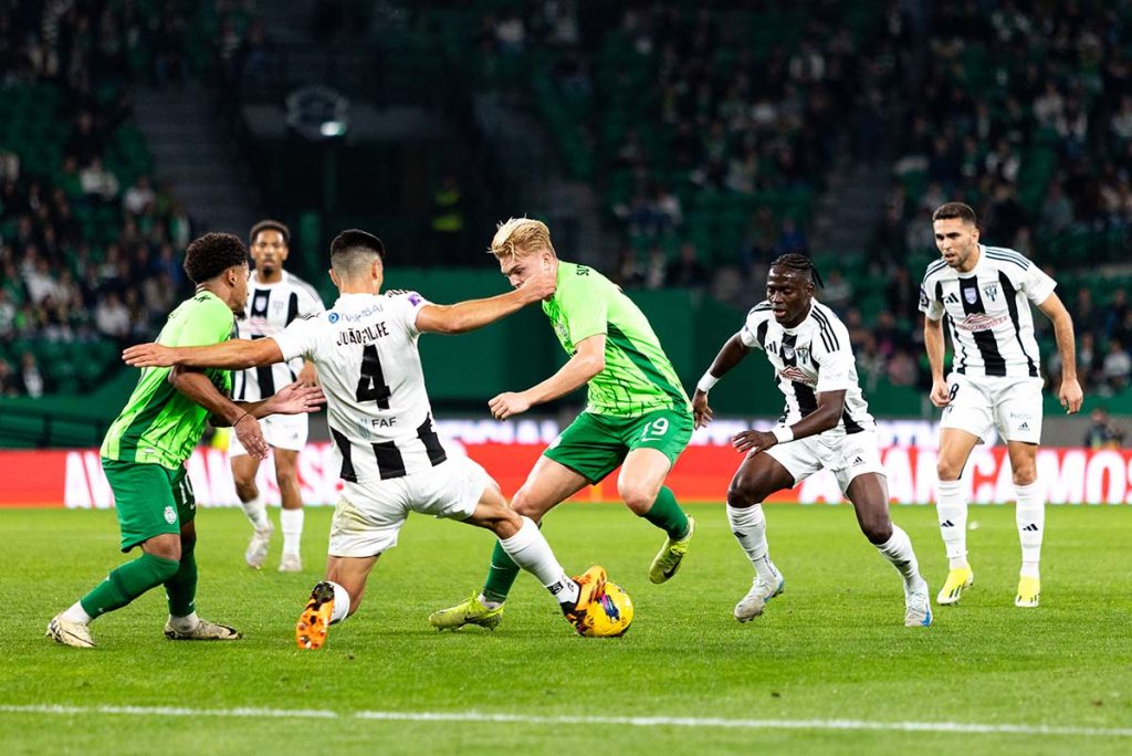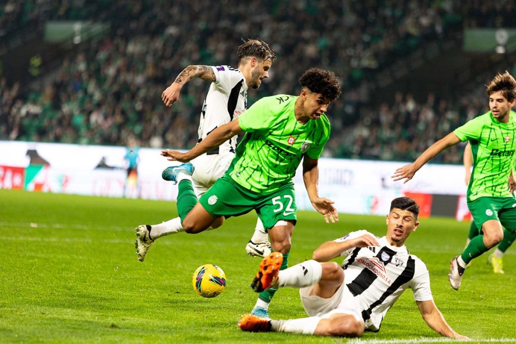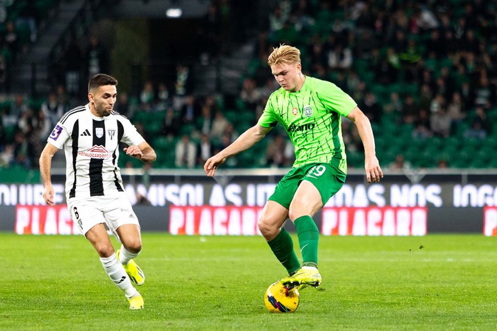 Naquele que foi o jogo de estreia do técnico João Pereira à frente dos destinos do Sporting, um jogo que era apontado como teoricamente mais fácil e que cumpriu as expectativas, os leões apareceram em campo aparentemente liderados por Tiago Teixeira, o adjunto que tem credenciais para assumir o comando da equipa leonina a partir do banco, com um “onze de Taça” escolhido por João Pereira com Markovic entre os postes, St. Juste, Gonçalo Inácio e Matheus Reis a formarem o trio de centrais, ainda Esgaio, Daniel Bragança, Hjulmand e Fresneda, aparecendo na frente Trincão, Marcus Edwards e Conrad Harder, neste jogo o nórdico de serviço para a busca dos golos para os leões.