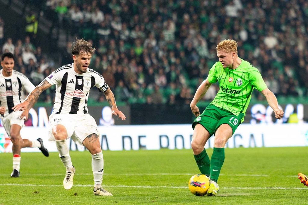 Gyokeres passou a assumir o centro do ataque, com Harder do lado esquerdo e Edwards descaído para a direita, isto enquanto que na defesa Matheus Reis surgia agora como central do meio, com Esgaio a central direito e Fresneda a central esquerdo, com Quenda e João Simões a jogarem nas alas da formação leonina.