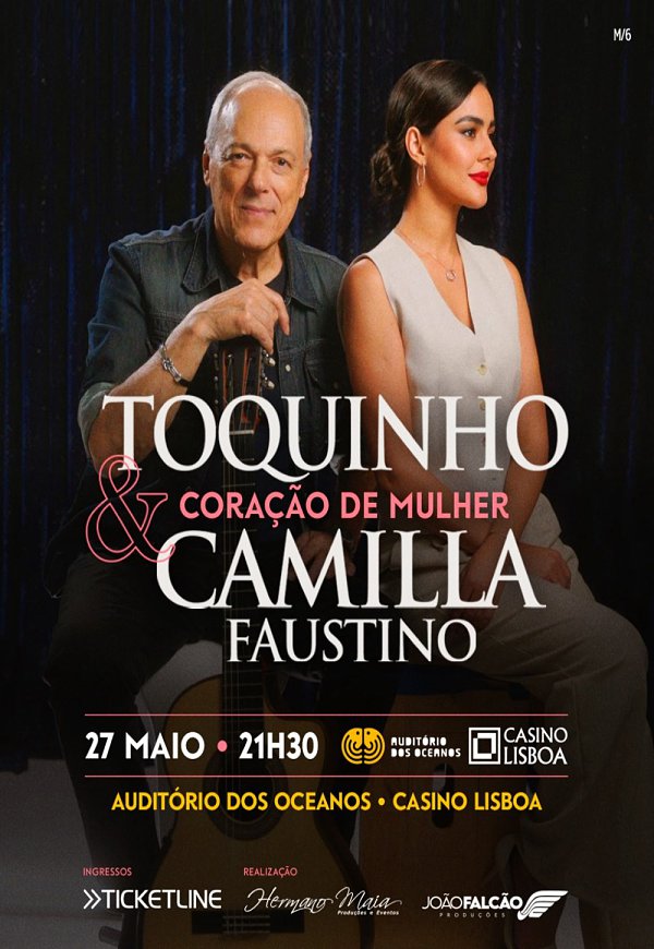 O Auditório dos Oceanos do Casino Lisboa irá assim receber, no dia 27 de maio, pelas 21h30, Toquinho e Camilla Faustino, para um espectáculo classificado para maiores de seis anos com os ingressos desde já disponíveis entre os 40 e os 50 euros, podendo estes ser reservados à distância de um clique, online, também aqui mesmo através da ligação permitida pelo LusoNotícias.