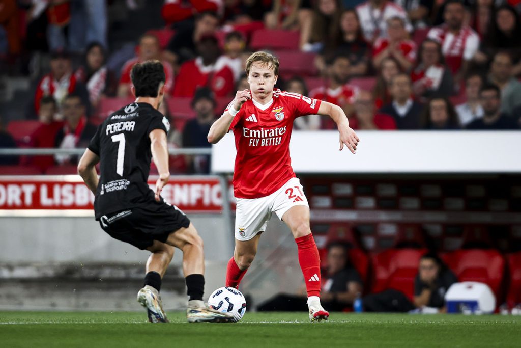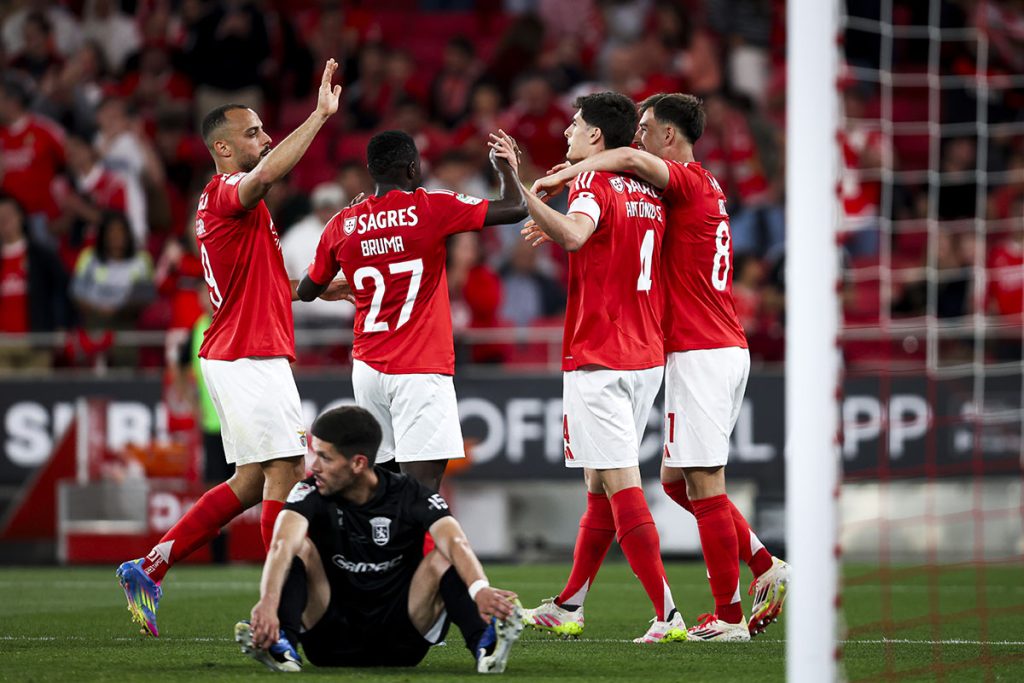Bruno Lage utilizou no segundo tempo Amdouni, Prestianni e André Veloso, mas também André Gomes e Hugo Félix (saíram para o banco Bruma, Schjelderup, Florentino, Samuel Soares e Tiago Gouveia), permitindo maior frescura física ao conjunto encarnado que pôde dominar ainda com maior assertividade as incidências do jogo.