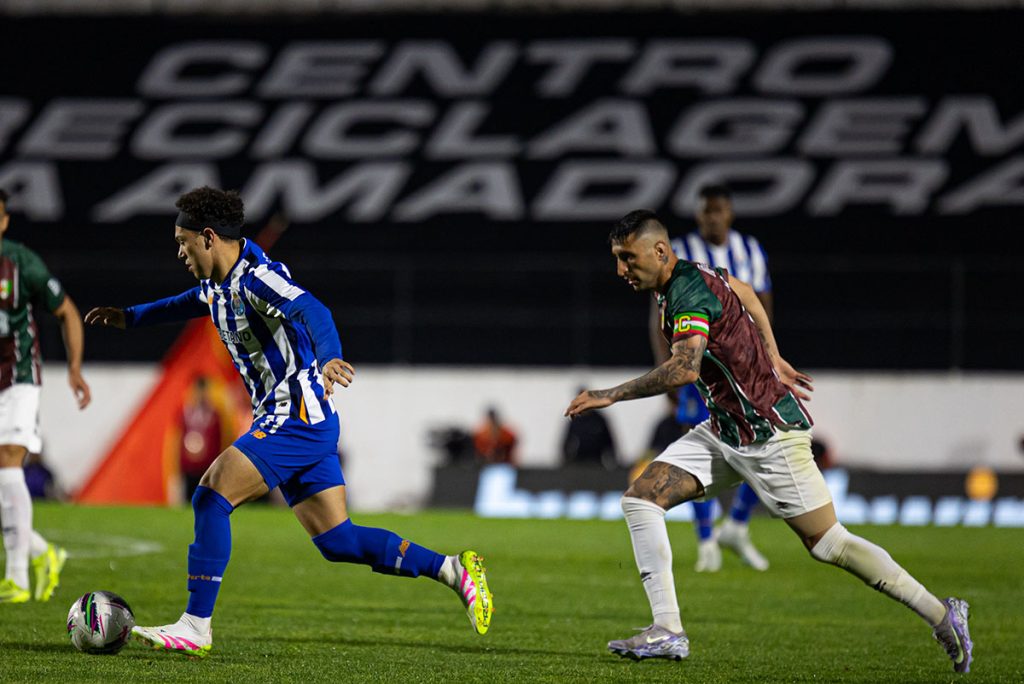 Já do lado do FC Porto, sem o seu “capitão” Diogo Costa, lesionado, ele que é claramente o jogador que faz a diferença no actual plantel portista, o “onze” foi montado por Martín Anselmi com Cláudio Ramos na baliza, um trio de centrais formado por Zé Pedro, Eustáquio e Marcano, ainda João Mário, Alan Varela, Fábio Vieira e Francisco Moura, aparecendo na frente Pepê (que na verdade não apareceu neste jogo) e Rodrigo Mora no apoio a Deniz Gül.
