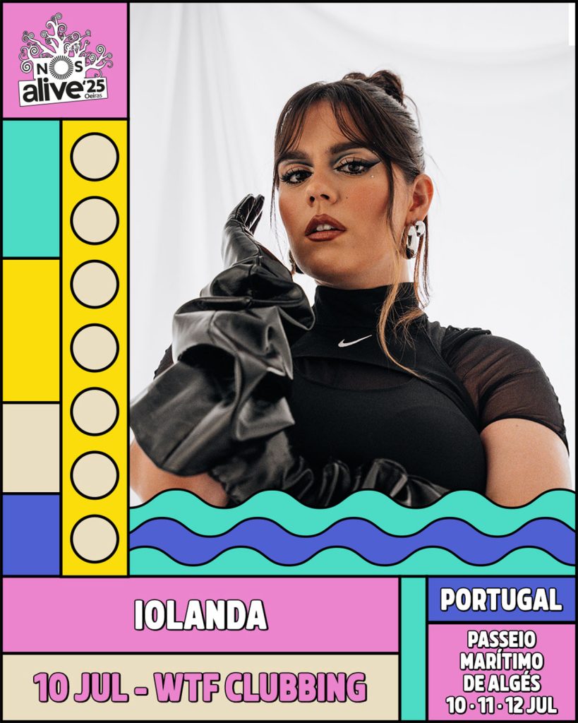 Agora, iolanda é um dos nomes confirmados para a próxima edição do Festival NOS Alive’25, com atuação marcada para o dia 10 de julho, no palco WTF Clubbing. A artista portuguesa junta-se a um cartaz de renome internacional que inclui nomes como Olivia Rodrigo, Nathy Peluso, Noah Kahan, Bad Nerves, Parov Stelar e Benson Boone, entre muitos outros.