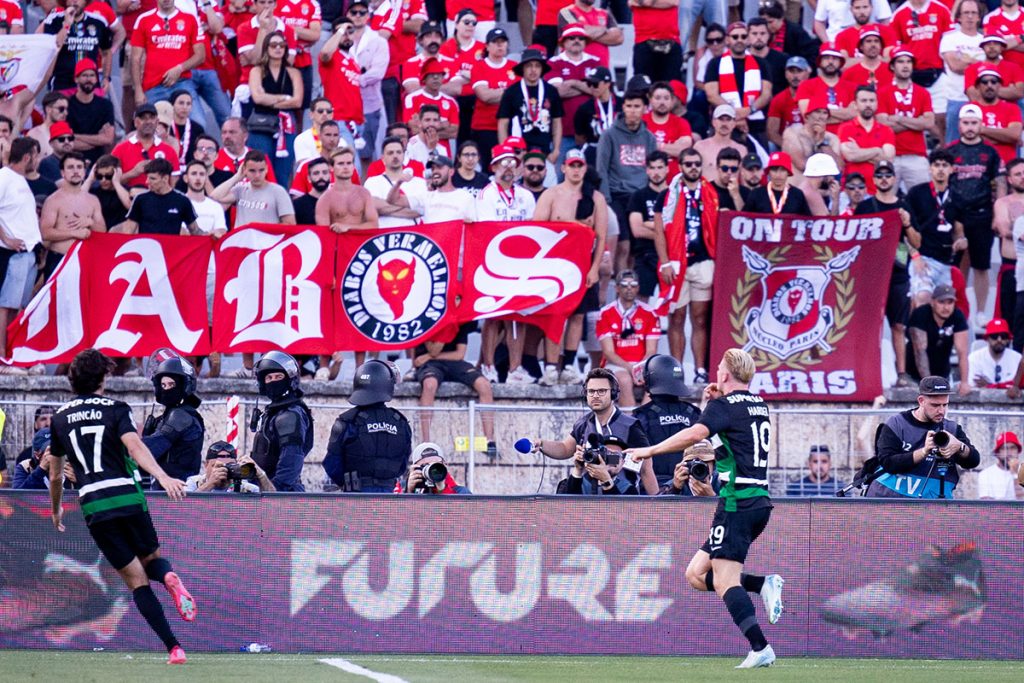 Os adeptos do Benfica abandonaram rapidamente as bancadas do Estádio Nacional, começando a debandada ainda antes do apito final do árbitro, acabando por ser os sportinguistas, que ocuparam o topo sul das bancadas, a fazerem a festa em tons de verde e branco, celebrando com o plantel do Sporting a conquista da Taça, troféu que o capitão leonino Hjulmand ergueu a partir da tribuna presidencial do Estádio Nacional no cair do pano sobre a temporada de futebol 24-25.