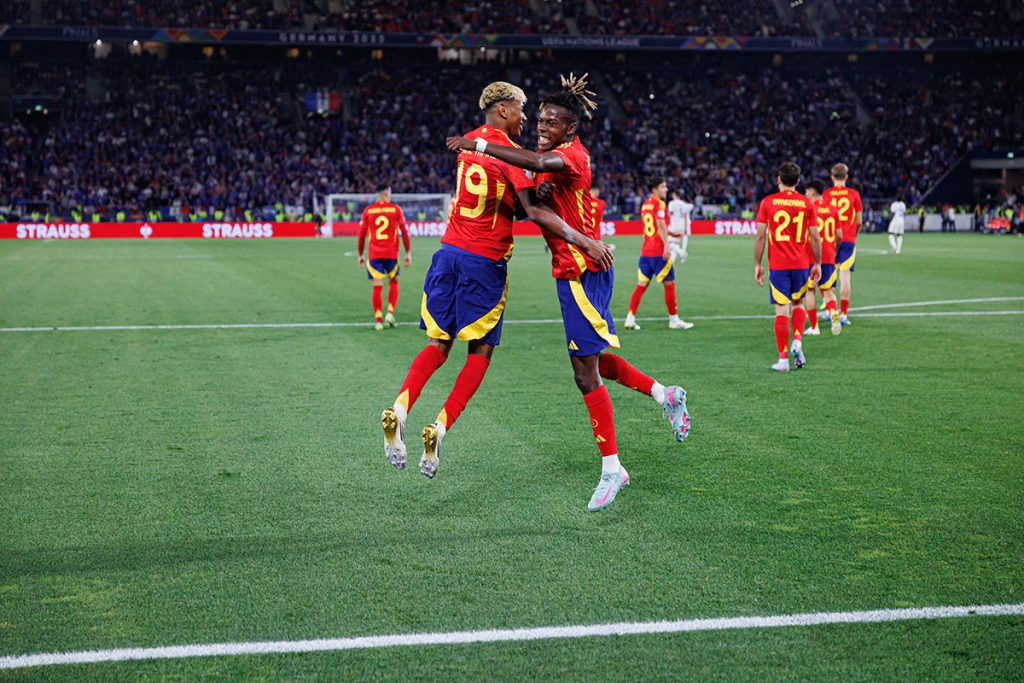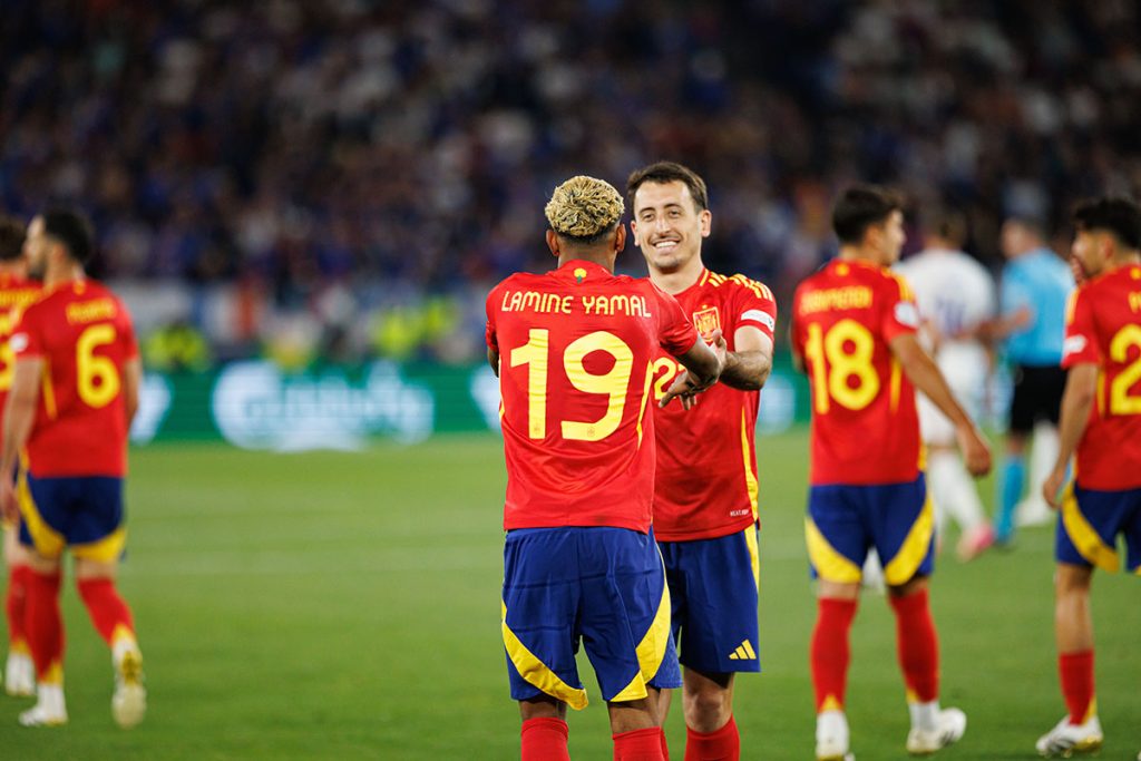 O início do jogo foi marcado pelo equilíbrio e intensidade, com ambas as equipões a procurarem profundidade, mas a encontrarem dificuldades em criar remates claros. A França, com Dembélé, Desiré Doué e Olise a apoiar um Mbappé com total liberdade, até parecia ter um ligeiro ascendente, com Théo Hernandez a atirar à trave na primeira grande oportunidade. No entanto, a “Roja” virou o tabuleiro em dois tempos, impulsionada pela irreverência dos seus jovens talentos.